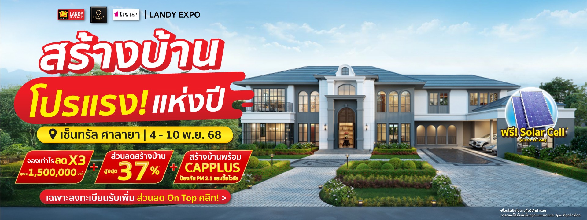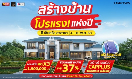 สร้างบ้าน กับโปรฯ แรงแห่งปี ที่ แลนดี้ เอ็กซ์โป เซ็นทรัล ศาลายา 4 - 10 พ.ย. 68 (ชั้น 1 ข้าง Auntie Anne's) พบส่วนลดสร้างบ้านสูงสุด 37%*,จองเท่าไร ลด x3 สูงสุด 1,500,000 บาท ลงทะเบียนรับโปรฯ แรงแห่งปี คลิกเลย